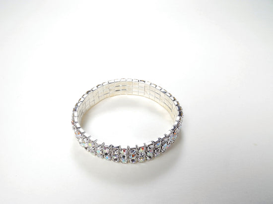 3 Row Crystal Bracelet BR0040-1 from FH2 is a dazzling performance bracelet. This extravagant iridescent rhinestone bracelet stretches to fit over any wrist. Completes any costume to give you that spectacular glammed up look. The perfect accent for competition and stage performance.