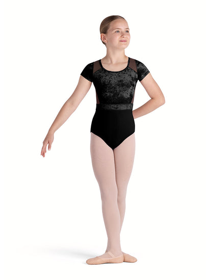 The Bloch Amelia Cap Sleeve Cross Back Leotard CL5282 from the 2024 Holiday Collection features a luxurious velvet fabric with a scoop neckline and cap sleeves. The stylish mesh cross back adds a modern touch, making it perfect for festive performances and dance classes.