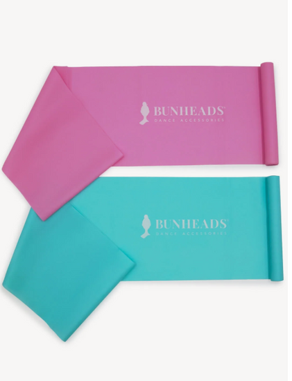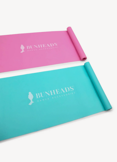 This pack of 100% TPE resistance exercise bands BH1706 from Bunheads, includes two options: one medium-strength turquoise band and one heavy-strength candy pink band. Made from flexible, durable, and non-slip materials, these bands are designed for maximum performance and versatility. Each band measures 4 feet (1.2 meters). Get your full-body workout in by using the bands on your upper body or lower body. Great for stretching and increasing flexibility.