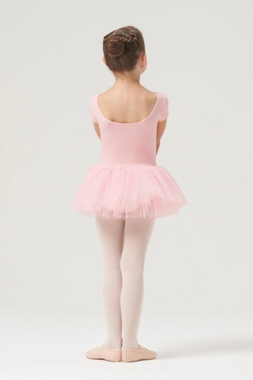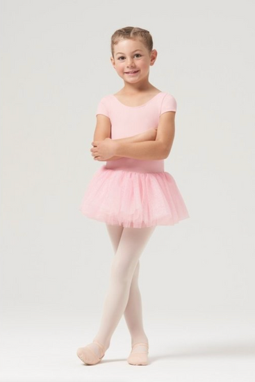 Clara Cap Sleeve Glitter Tutu Dress CL1022 from Bloch is the cutest spin on a classic design. This cap sleeve leotard features a built in tulle skirt with a glitter overlay for comfort and ease, plus a scoop neck and back for a simple yet stunning design. This leotard is perfect for your little dancer's debut!
