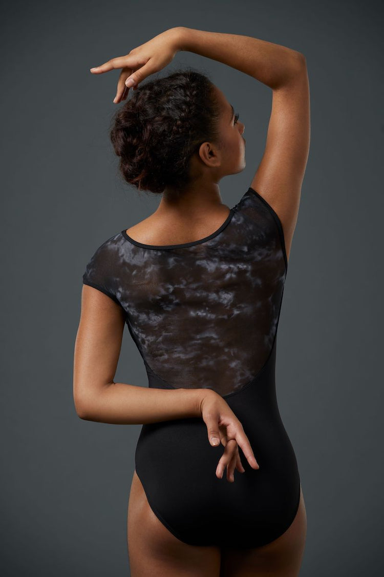 Cap Sleeve Leotard with Watercolour Mesh Details