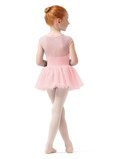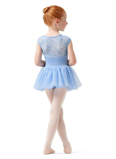 Cap Sleeve Scoop Neck Printed Tutu Dress M1557C from Mirella will have any little dancer feeling like a princess! This cap sleeve tutu dress is designed with mesh detailing that is breathable and comfortable for any dancer, a scoop neck design, and a built-in skirt for easy styling. Perfect for in-studio, on-stage, or at-home practice, this is the perfect choice for any dancer.