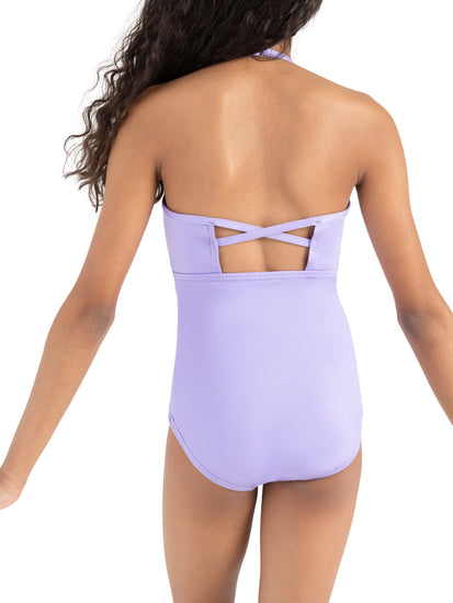 The Camisole Halter Leotard SE1019C from Capezio's Studio Collection is a cute and stylish piece perfect for young dancers. Featuring a high neck halter style and a low crisscross back, this leotard is designed for both comfort and elegance.