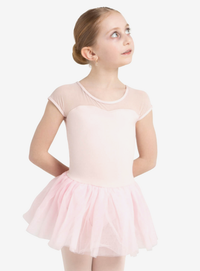 Watch your dancer steal the show in the Keyhole Back Tutu Dress from Capezio style 11394C. Features full front lining, mesh sweetheart illusion neckline and mesh cap sleeves. Mesh adds stylized ventilation to keep rising dancers dry when working up a sweat. Full, three layer tutu will enhance every pirouette.