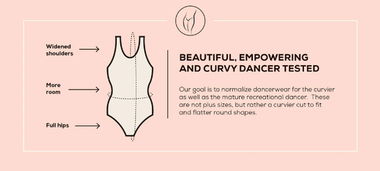 So Danca's Marla style SL211 is part of the Curvy Collection that is carefully designed to flatter curvier bodies. That means the pieces are not just larger but cut to work with rounder shapes.