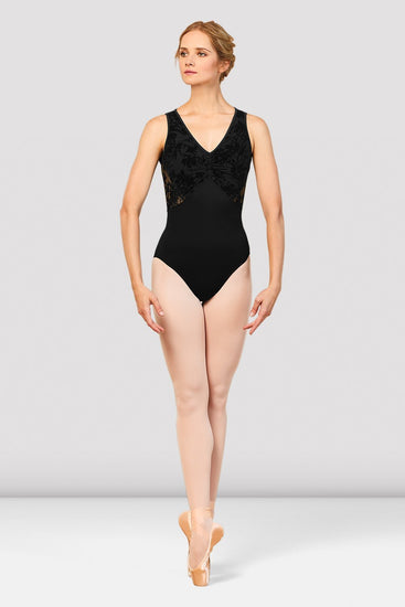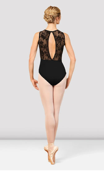 Bloch L7895 Cosima Gathered Front Tank Leotard features a floriade mesh overlay with a gathered front and keyhole back.