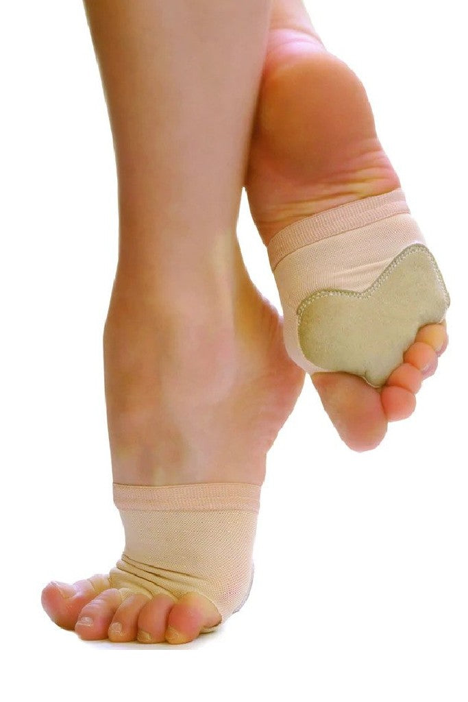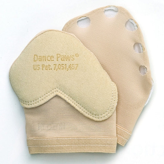 Dance Paws 3434 give the protection of a shoe with a barefoot look and feel. The synthetic suede sole has less friction than feet for perfect turning. Dance paws stay securely in place with an elastic hem and snug stretch mesh construction. A hole for each toe is comfortable and can be trimmed to fit.