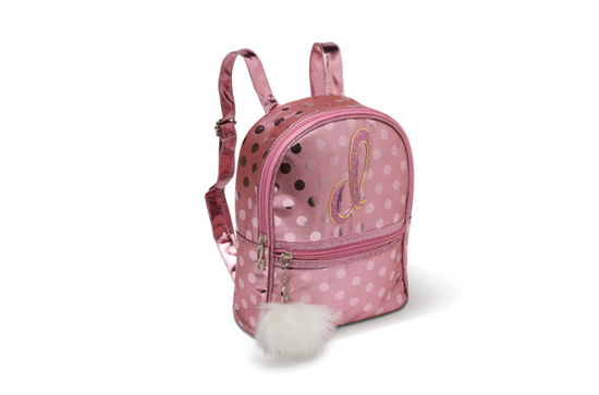 My Dance Dot Backpack B22510 from Danshuz is pretty and pink! This backpack is the perfect size for all young dancer's! Features a full top zipper, front zippered pocket, and an adorable poof keychain! Adjustable backpack straps and "d" patch for DANZNMOTION logo, as well as zipper pulls. Inside of backpack is fully lined, making it easy to clean. Lightweight and folds flat.