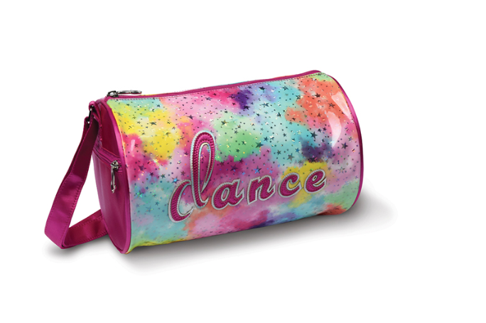 Stars Tie-Dye Duffel B23520 from Danshuz is an adorable duffel that is the perfect size for your little dancer. The brightly colored tie-dye outer pattern is punctuated with silver holographic stars. Includes an adjustable carrying handle/shoulder strap and a zipper side pocket with our "d" logo zipper pull. This little dancer’s duffel is fully lined, zips closed, wipes clean and folds flat.