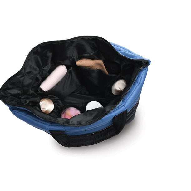 Style B23507 from Danshuz is the ultimate dancer’s over-sized tote. Our new dance bag features a beautiful two-tone puffed exterior with an outside zipper pocket for quick access to your phone or personal items. The large inside compartment boasts 5 pockets to accommodate shoes, clothing and accessories to make organizing your gear a snap. This large inside space will hold all your dancing needs. The full-length zipper top is expandable