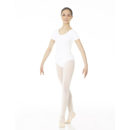 Mondor simple 40096, classic and comfortable! Our short sleeve leotard is made in a soft matte finish nylon. Lined front with wicking properties hugs your body, providing an exceptional fit. You'll love the clean n' graceful look for class, auditions, and more!