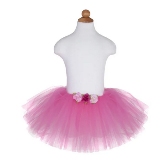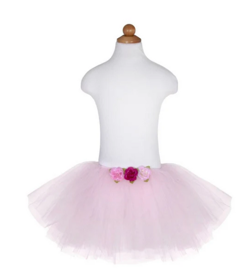 Fluffy tulle makes this adorable tutu one of a kind! Our signature tulle is not scratchy, but super soft. Gathered at the waist into the 1/2" wide elastic allows for additional sizing flexibility and comfort. Silk roses at the waist add a touch of detail. These tutus are made with care in Canada, and are a favorite essential piece with all little ballerinas and fairies.