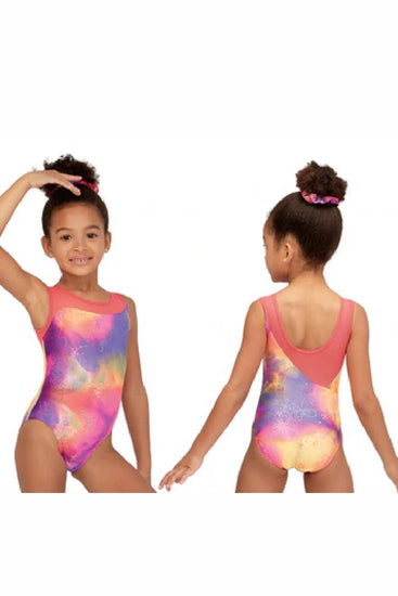 Gymnastics Printed Tank Leotard with Mesh 27814 from Mondor is an exceptional gymnastics bodysuit. This gymnastics leotard will keep you secure and cool with the mesh tank sleeves. The fun print of this outfit will turn heads.