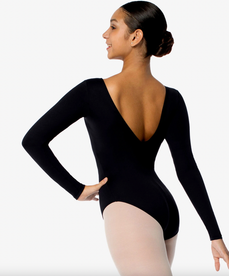 Long Sleeve Leotard with Low Back SL117/SL118 from So Danca is a classic addition to every dancers wardrobe. This bodysuit is a long sleeve style that gives you more coverage. Also, this leotard features a pinch in the front and low back to help dancers give an image of beauty.