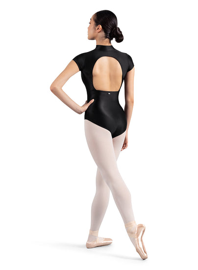 The Glow Zip Front Leotard M5106M from Mirella features cap sleeves with an open back and a zip front closure. Radiate in the celestial allure of the Ladies Mirella Glow Collection, showcasing a dazzling selection of glossy styles crafted from sustainable fabric.