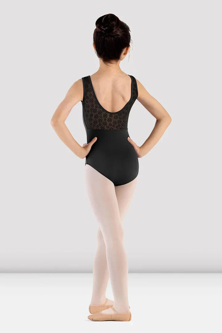 Scoop Back Leotard M494C from Mirella's Majesty collection brings charm and elegance to every class. Featuring a graceful scoop neckline with a subtle sweetheart detail, this leotard is beautifully accented with delicate daisy lace panels and a dramatic scoop back. The tank straps provide a secure fit, while the ballet leg line ensures freedom of movement.