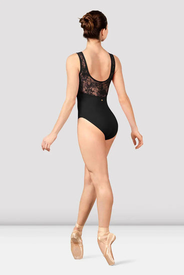 Tank Leotard M3121LM from Mirella's Majesty collection exudes elegance with its delicate lace panelled bust and back design. Featuring a high scoop neckline with a subtle sweetheart detail, tank straps, and a graceful low scoop back, this leotard offers both style and comfort.