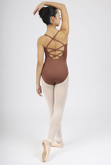 Mondor 1443 Leotard is an eye-catching leotard. This bodysuit is a tank style with crossed spaghetti straps at the back.