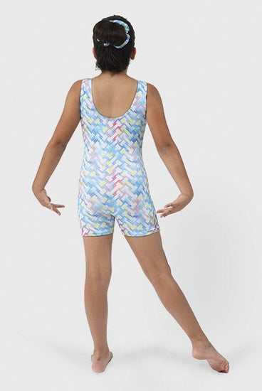 The Printed Unitard 17805 from Mondor is a fun unitard with a retro appeal. This unitard features a comfort gusset, a 2" inseam, and a matching hair tie to complete the look.