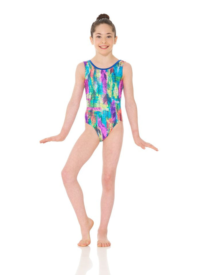 The Sleeveless Gymnastics Leotard with Strappy Back 17893 from Mondor is a must-have leotard! With its fun print and strappy back feature you will be sure to stand out. To complete your look, it also comes with a matching scrunchie!