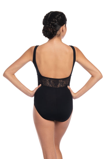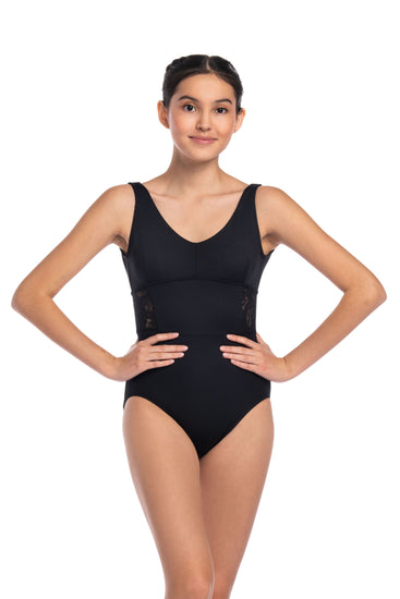 Features of the Ophelia Tank Leotard with Lace Side Cutouts and Back