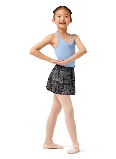 Printed Mesh Pull On Skirt M149C from Mirella is a beautiful skirt to add to your collection. This skirt features a pull-on design with an elastic waistband for your dancer's comfort while dancing, and features a unique design. Perfect for in-studio practice, this skirt is a beautiful choice for all dancers.