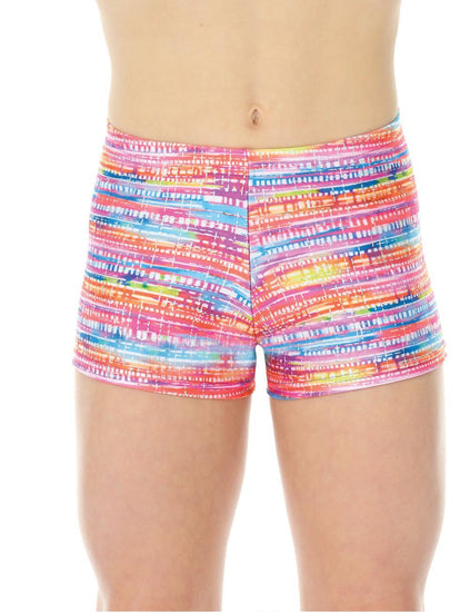 Metallic Shorts 27825 from Mondor are exceptional gymnastics shorts. These shorts will catch everyone’s eye with the metallic print while you show off your personality.