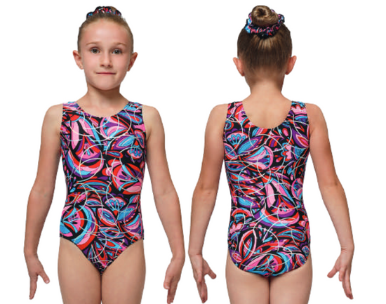 Features of the Printed Tank Metallic Detail Gynmastics Leotard
