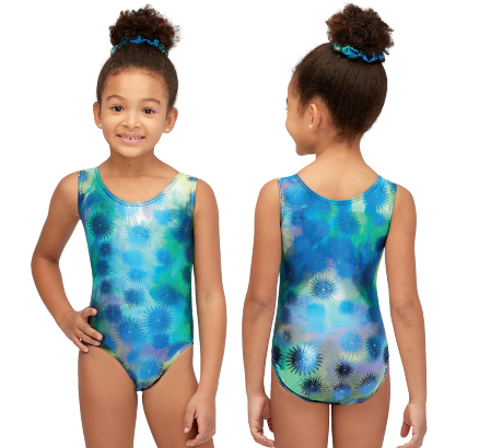 Printed Tank Metallic Detail Gynmastics Leotard 7822 from Mondor is an exceptional gymnastics leo. This bodysuit is a tank style that will keep you secure. You will turn heads in this fun print leotard with a matching scrunchie.