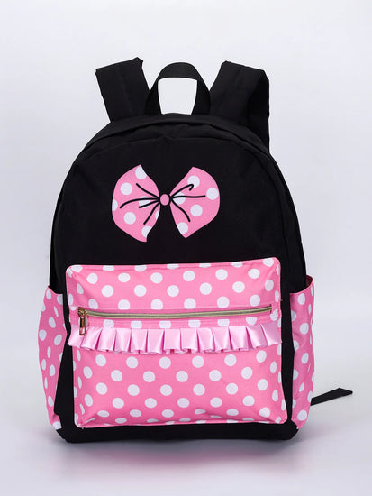 Polka Dots Printed Character Backpacks BA0183-M from Sassy Kids Palace, with its compact size of 10" x 13.9" x 4". This Flower Kids Ruffle Backpack is perfect for young children to carry all their essentials.