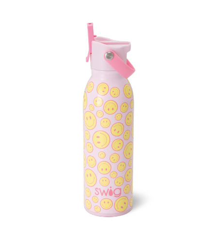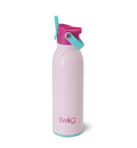 The Flip + Sip Bottle 16oz from Swig is your perfect travel companion! Featuring playful designs, this bottle keeps drinks cold for 24+ hours. With an easy-carry handle, straw, and durable stainless steel construction, it's condensation-free, non-breakable, and fits most cup holders.