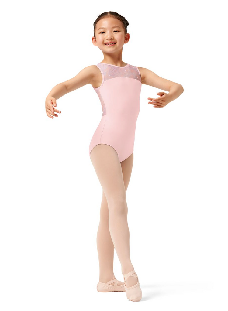 Features of the Mirella Tank Leotard with Printed Mesh Keyhole Back M486C