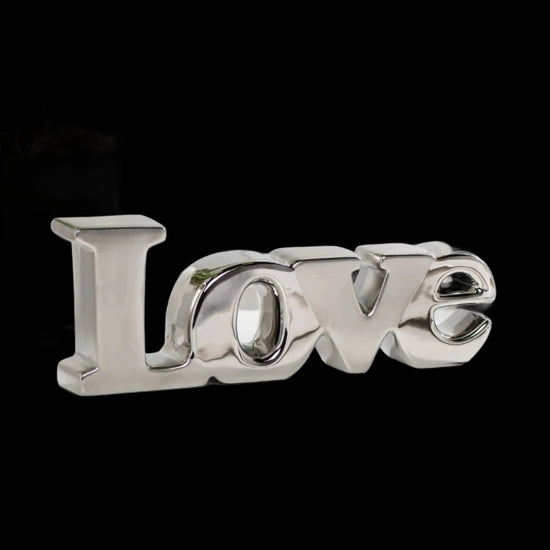 Show your love with this ceramic word art decorative sculpture. Finished in a duo of matte and shiny silver, this piece will add interest and drama any space.