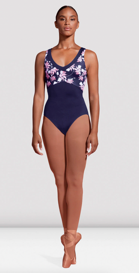 V-Neck Tank Scoop Back Jardin Leotard M3097LM from Mirella is a noteworthy leotard. This bodysuit features a V Neckline with flower print bodice and scoop back design. Part of the spring inspired Mirella Jardin Collection featuring a stunning contrast of delicate floral print, coloured panels and stylish mesh detailing. A beautifully cut collection which enhances lines and boasts style, perfect for both studio and performance.